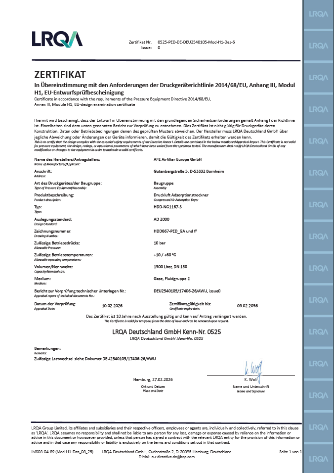 Certificates AFE Airfilter EuropeISO 9001 AFEP Airfilter EuropeManufacturing CompanyISO 9001